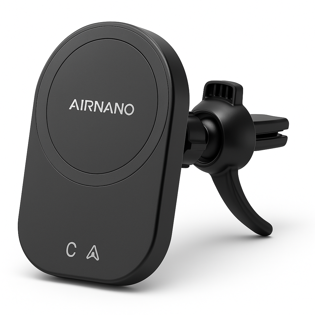 Upgrade your car with the ultimate wireless CarPlay and Android Auto solution. The Airnano C-12 integrates premium wireless connectivity, a powerful 15W MagSafe charger, and a secure car vent mount system into one compact and elegant device.