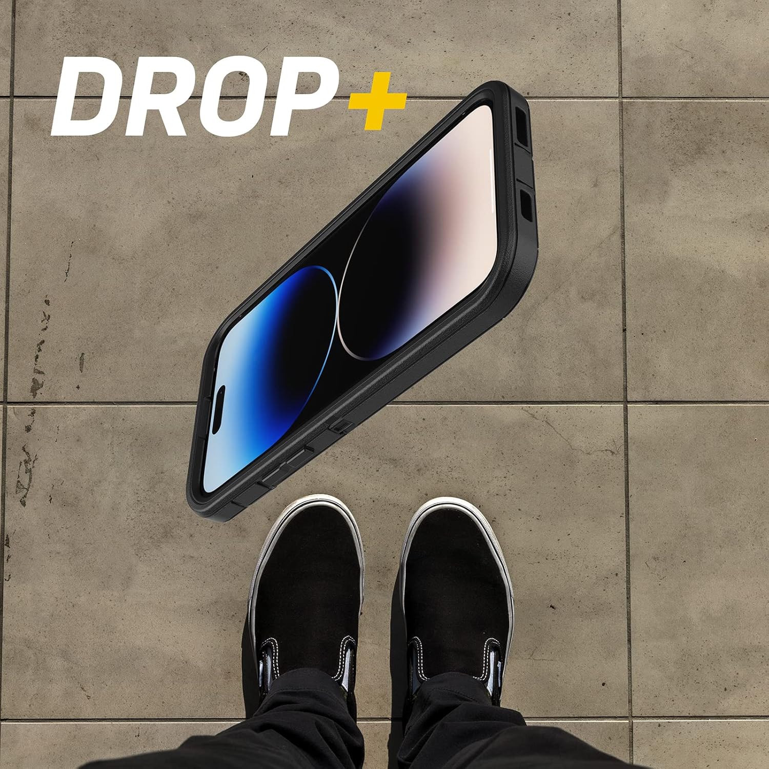 Rugged multi-layer protective case for iPhone 14 Pro Max with Drop+ protection, port covers, belt-clip holster, and enhanced screen and camera defense.