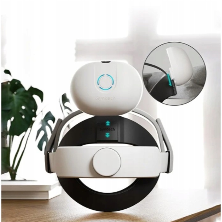 Syntech head strap with integrated 10,000mAh battery pack for Quest 3 and Quest 3S.